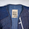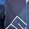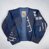 This is the second piece in a new series of quilted jackets. I made the pattern from a vintage USAF bomber jacket, and the sleeve panels are engineered for reaching forward. I used repurposed fabrics from two vintage Japanese kimonos and one happi coat that I deconstructed. The fabrics are all cotton and stencil dyed with plant indigo.