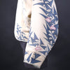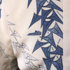 Among the thousands of kimonos I've seen over the years, there is nothing even remotely similar to this very artistic interpretation of morning glory – featuring bold, blue leaves. To achieve the subtle speckles on the leaves and blossoms using stencils requires a special talent. Faded gold metallic pigmented dots are also sprinkled throughout the pattern for extra dazzle. A very bold statement even for kimono, this artistic silk is the only one of its kind.
