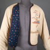 This bomber jacket features a landscape design that sums up everything I love about Japanese surface design: abstracted symbols of nature, cropped vistas with partial reveals, bold organizational geometry, and large swaths of emptiness. I am particularly happy that I was able to align the pattern on the left sleeve with the horizontal motifs on the rest of the jacket. Narrow Japanese silks are not always so amenable.