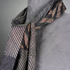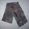 The edges are stitched but not hemmed, and the outline of the scarf becomes jagged on two sides, with patches jutting out of square. Though seemingly straightforward, the construction of this piece was a challenge because the scarf never follows the grain of the fabric.