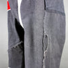 I preserved the raw edge of a torn collar section which appears on the right leg. And a vintage patch job by a previous owner appears on the back of that leg as well. The pant legs are unhemmed and measure 36-38" from the waistband. The dress form measures 33" around at that point.