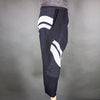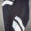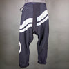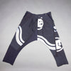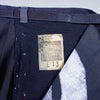 The large, wavy, stenciled stripes are rare for a happi coat, and, when repurposed for these pants, they create a pattern that was totally unexpected. The fabric is a lighter weight twill with various repairs, patchings, and some small remaining holes.