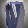 I deconstructed three vintage Japanese garments for these momohiki wrap pants – comprised of stenciled, solid, and woven textiles. All the piecework panels are half the width of traditional Japanese looms, and the seams of the pants overlap to highlight loom selvedge edges.
