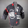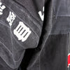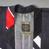 Wear marks from the vintage happi are evident on the opened seams and hems, and there is discoloration on the backside under the right arm. There is also vintage patching performed by a previous owner, vents on the sides for easy movement, and ties for optional closure. The heavyweight cotton twill combined with the dense linen lining make this a multi-season garment, which can easily be layered because of the boxy fit.