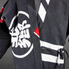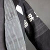 Prized pieces of vintage Japanese happi coats comprise this debut piece. I collaged various kanji, stripes, and mon from vintage festival jackets onto a printed linen lining that I over-dyed. This is also the first coat I have made with interior pockets: a larger one on the left breast and a smaller one on the right side.
